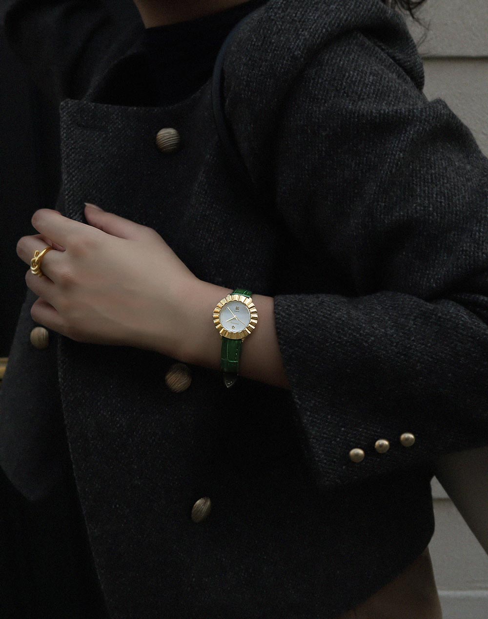 Twenty curved bezels with perfect balance and the elegant color of the natural leather band are points that will make your style stand out even more.