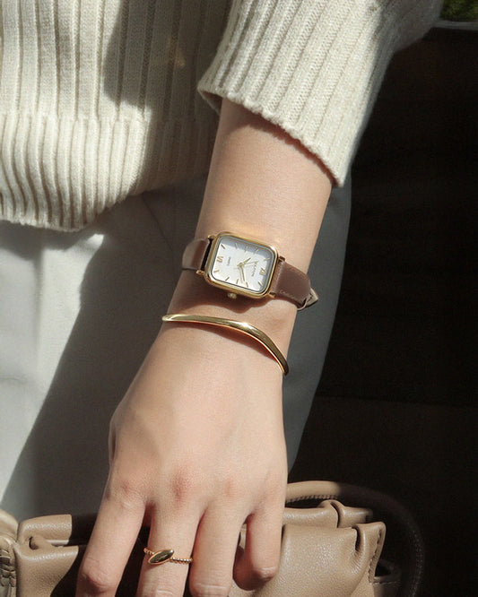 Tasteful beige collection featuring a carefully selected beige leather band that perfectly complements any outfit.
