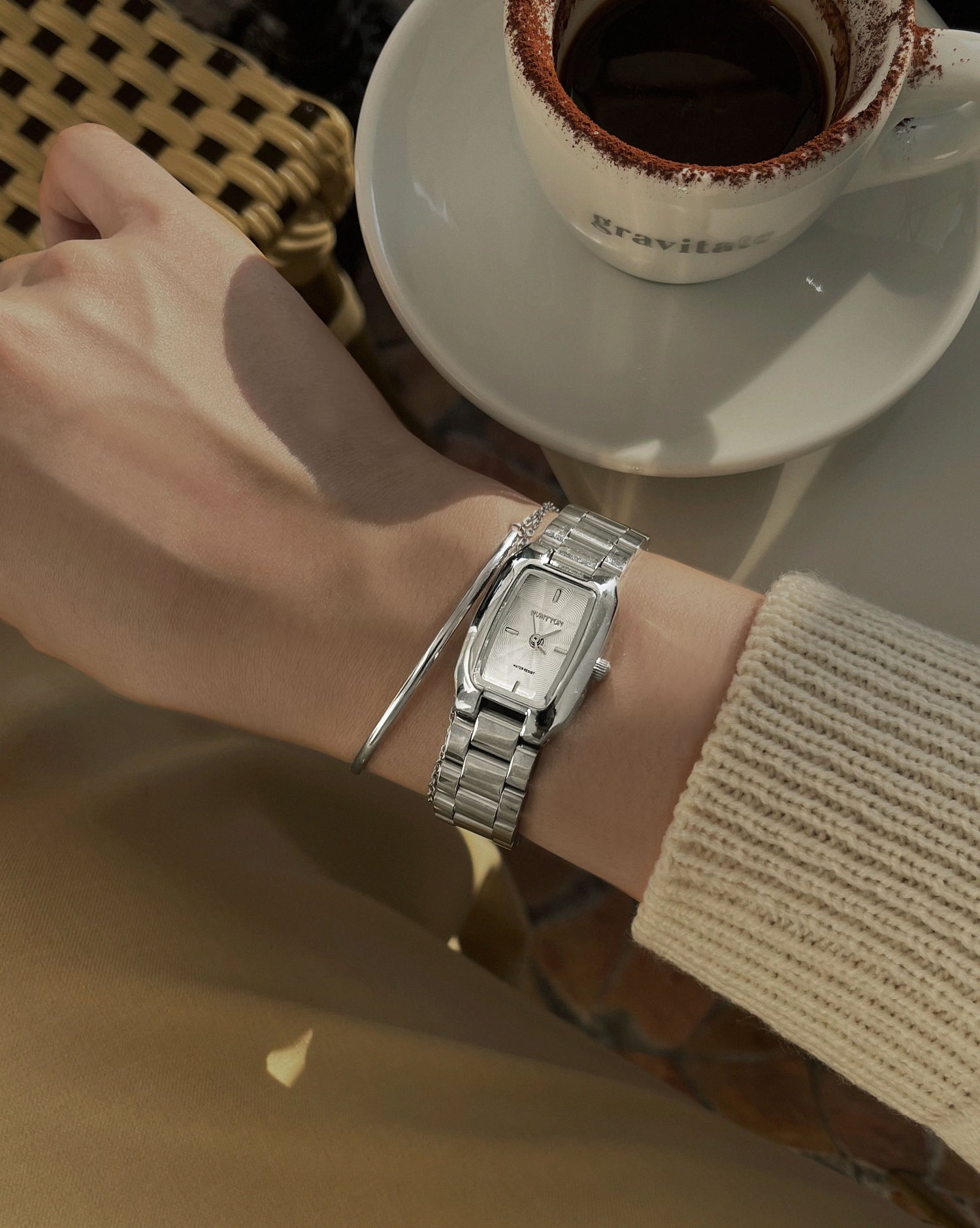 The bracelet-type watch Brit, whose case and steel band are made in one piece, has a presence thanks to its bold design, making it an elegant point.