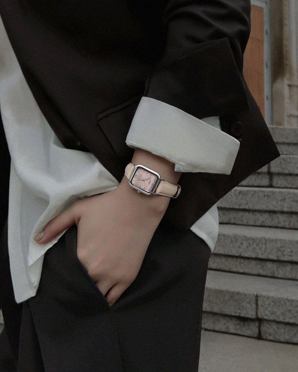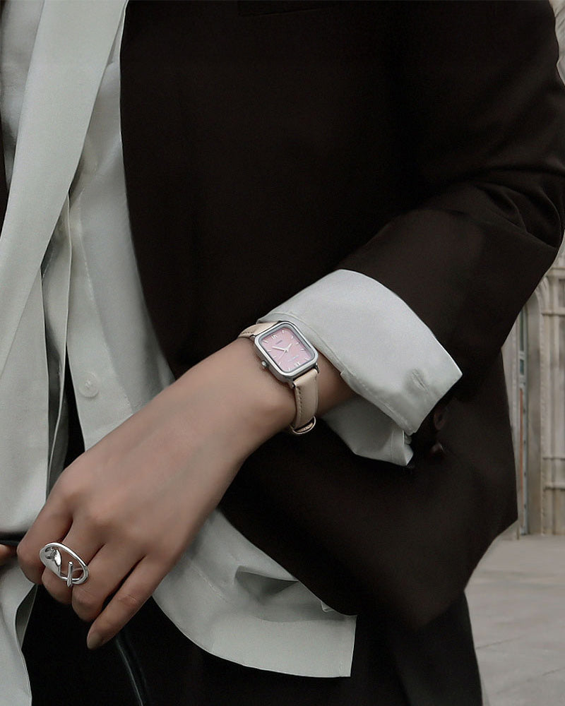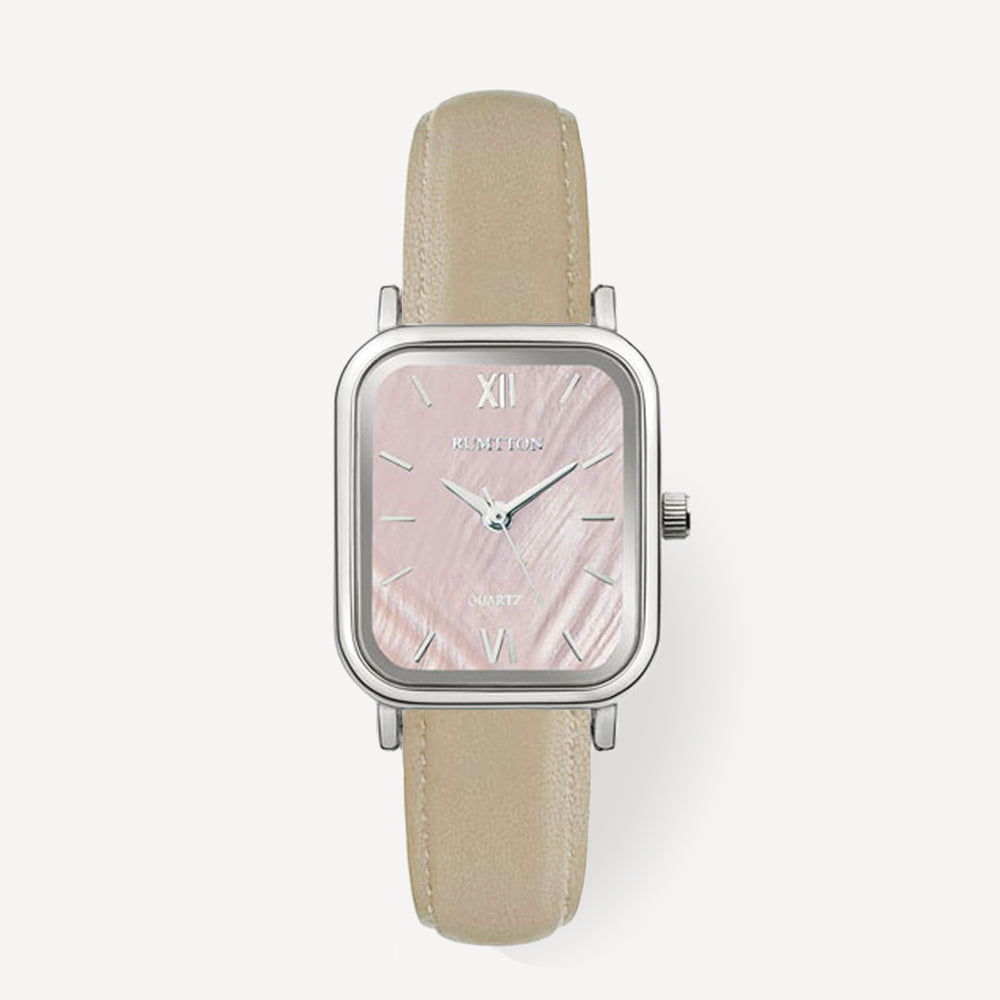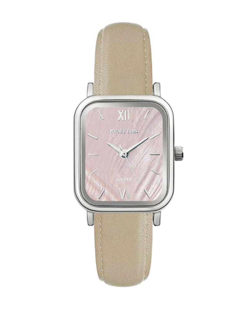 魅力的な天然真珠の文字盤を備えたRUMTTON HARBOR。柔らかく輝く天然の真珠の文字盤は、さまざまなコーディネートにおいて良いポイントになるでしょう。本物のレザーバンドは長時間の着用にも快適です。