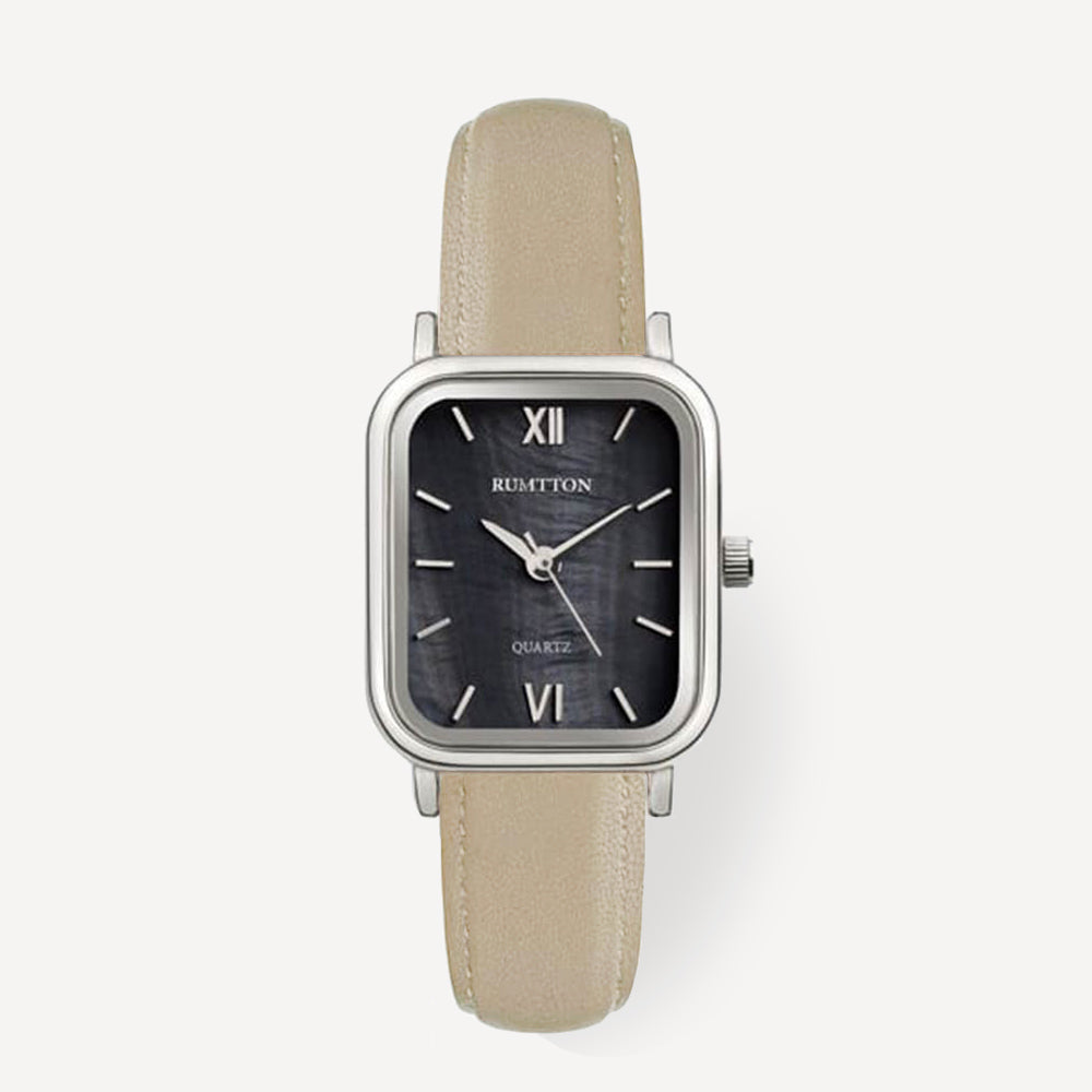 Introducing the RUMTTON HARBOR watch, featuring a captivating black mother-of-pearl dial that shimmers with an iridescent glow. The luxurious leather band adds a touch of sophistication, making it versatile enough for any occasion. Crafted for everyday elegance, this timepiece is built to last.