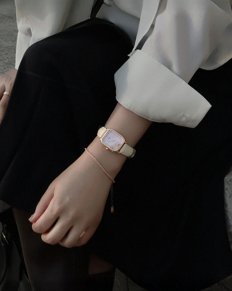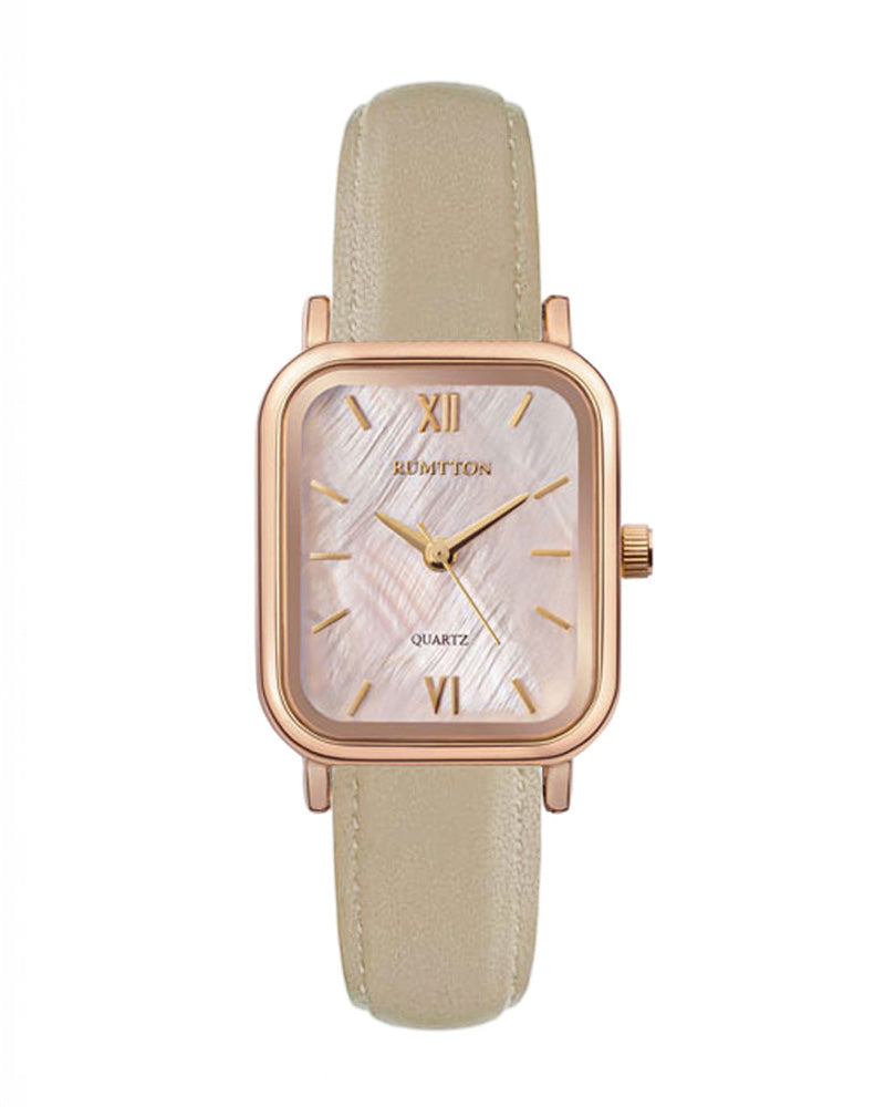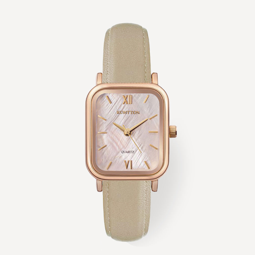 Introducing the RUMTTON HARBOR watch, featuring an alluring natural mother-of-pearl dial. The dial exudes a gentle sparkle, complemented by a stylish leather band that effortlessly pairs with any ensemble. Designed for everyday wear, this timepiece is built to last.