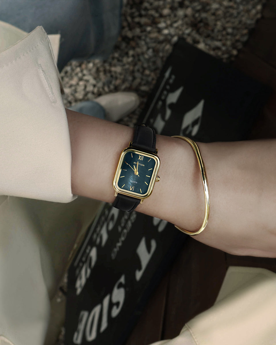 Crafted with a captivating black mother-of-pearl dial, the RUMTTON HARBOR watch adds a touch of sophistication to any ensemble. The genuine leather band ensures a comfortable and luxurious feel for all-day wear. Experience the perfect blend of elegance and comfort with this timeless timepiece.
