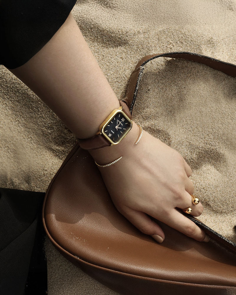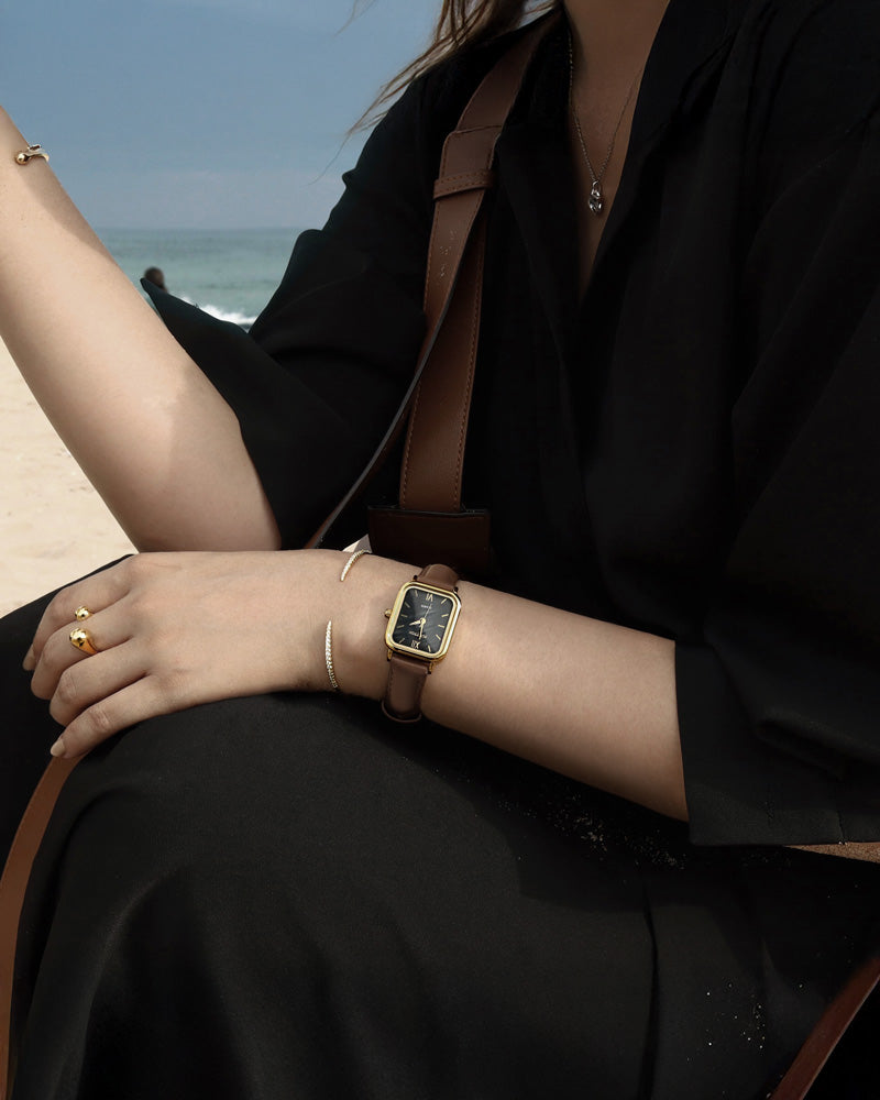 Crafted with a captivating black mother-of-pearl dial, the RUMTTON HARBOR watch adds a touch of sophistication to any ensemble. The genuine leather band ensures a comfortable and luxurious feel for all-day wear. Experience the perfect blend of elegance and comfort with this timeless timepiece.
