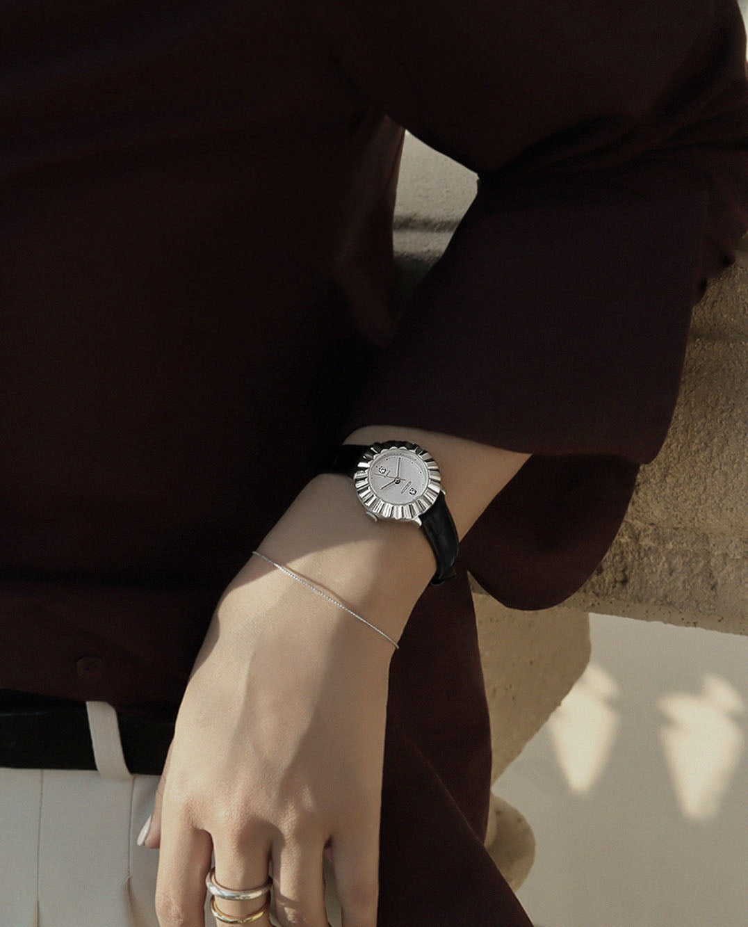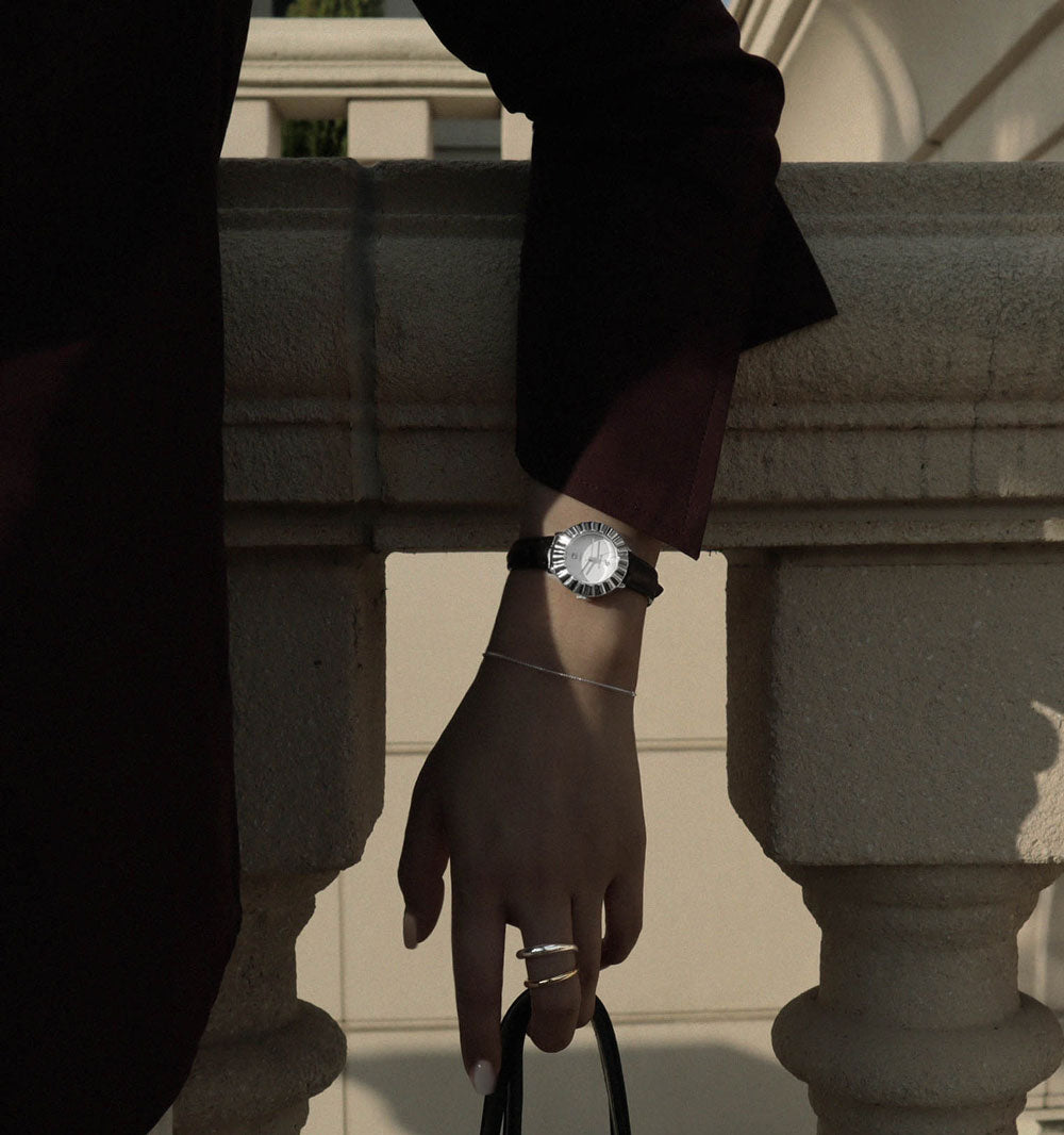 The RUMTTON BLOOM watch features Swarovski crystals on the dial and 20 wavy bezels for a luxurious look. The comfortable leather band and special design make the BLOOM watch a highly collectible item.