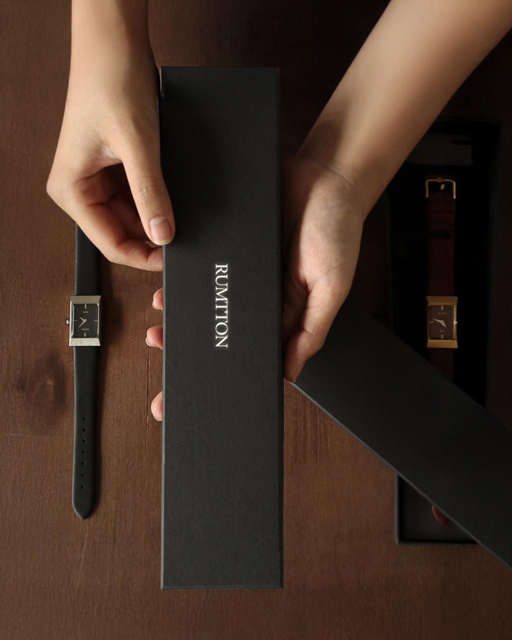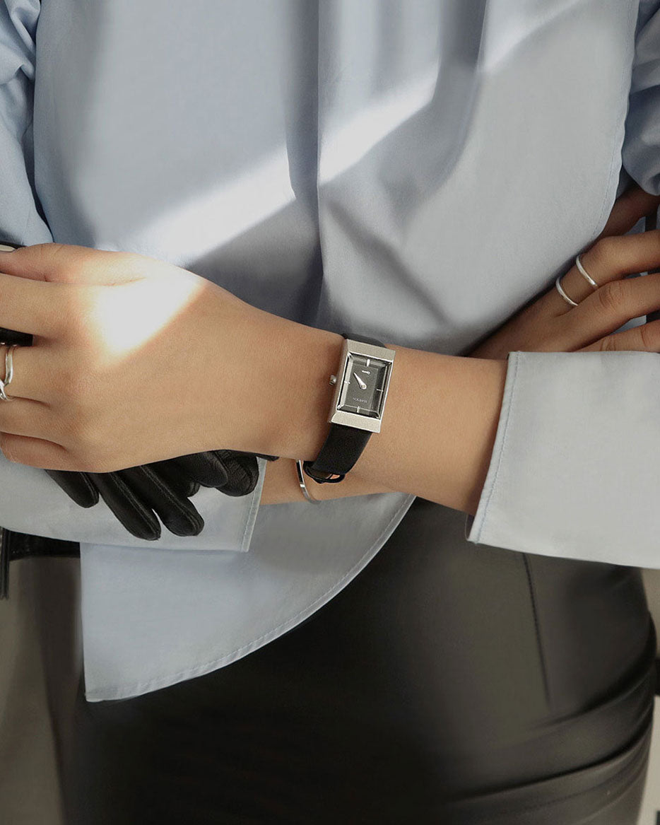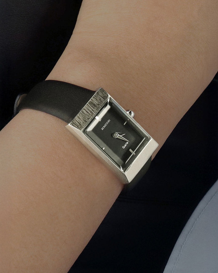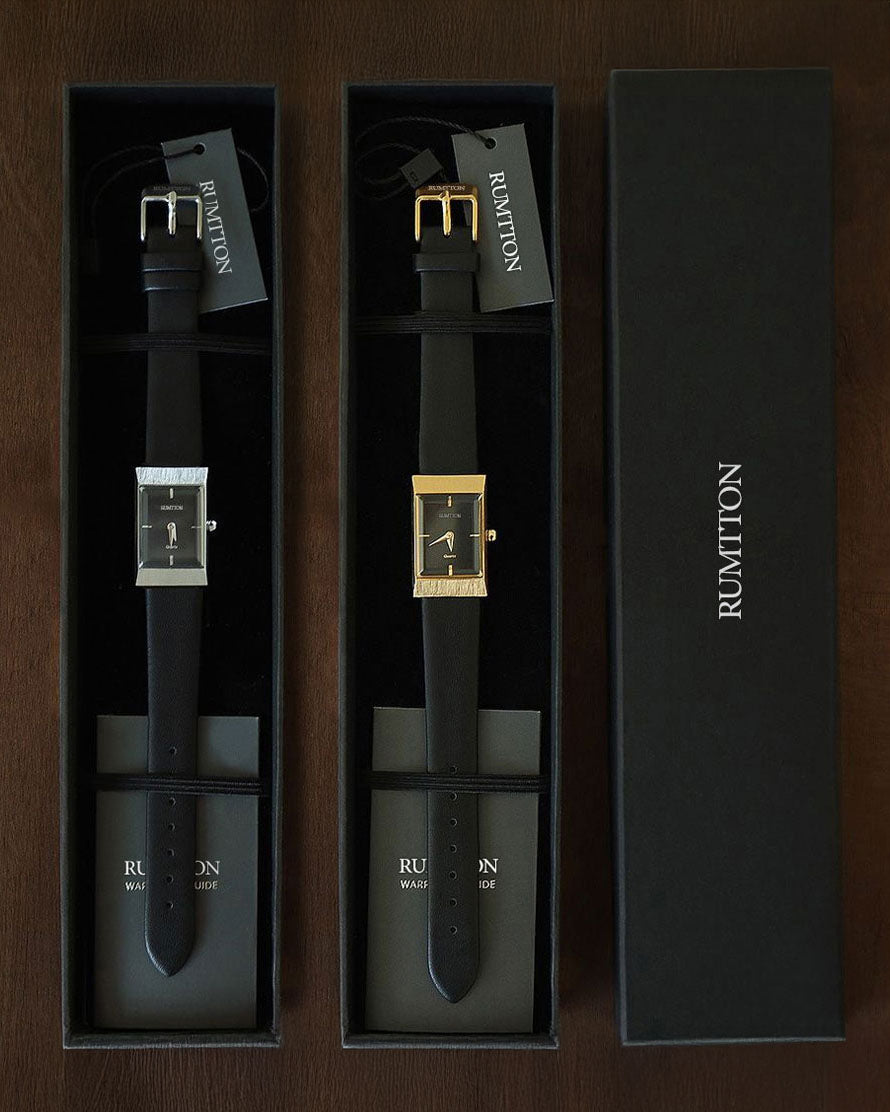 The RUMTTON GRID watch features a captivating interplay between the thick glass and the hairline-finished case. The natural leather band, with its unique softness and rich color, adds a touch of timeless elegance, making this watch a perfect choice for special occasions.