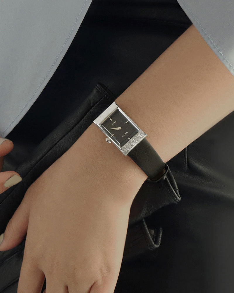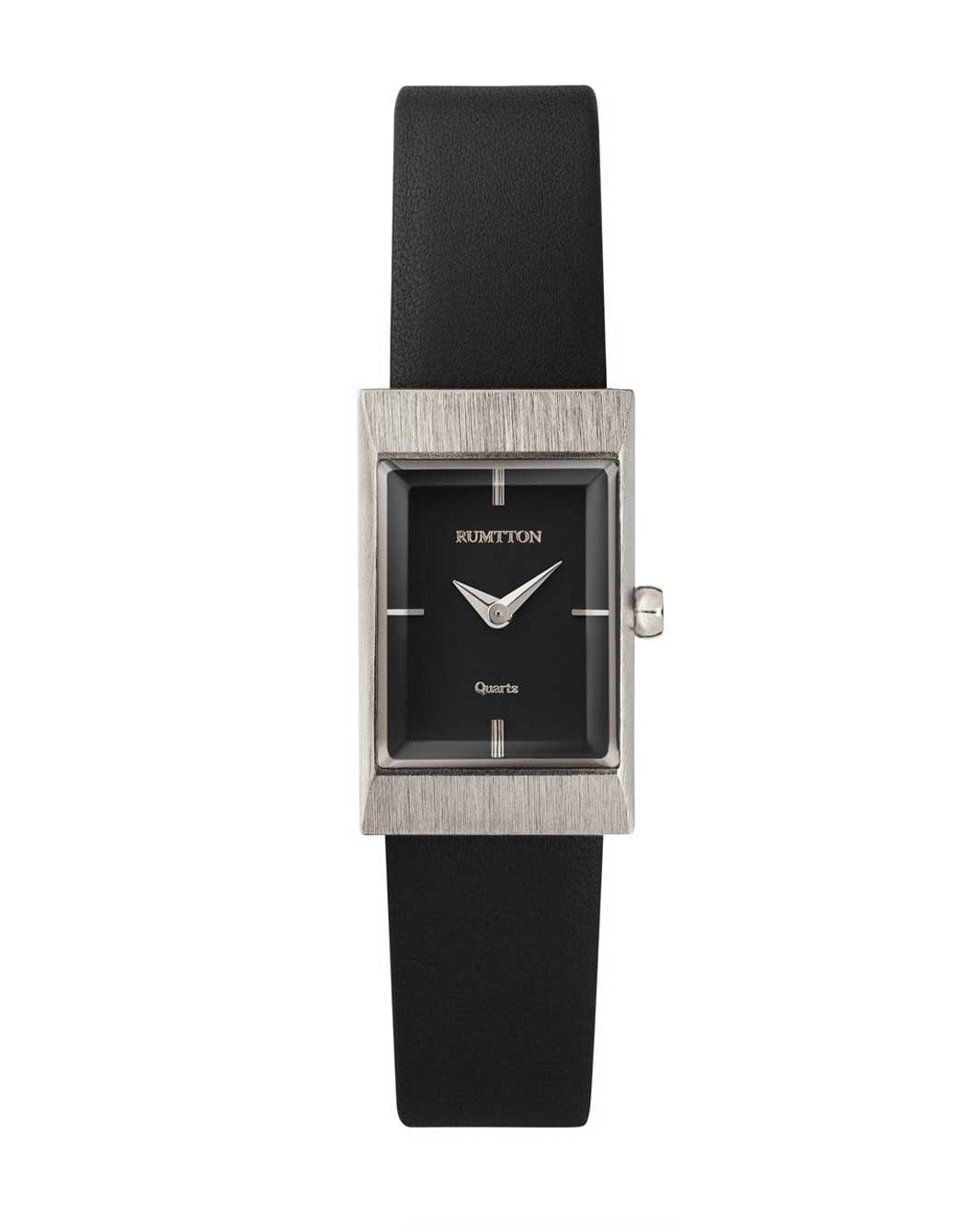 RUMTTON GRID Black Silver Square Leather Watch