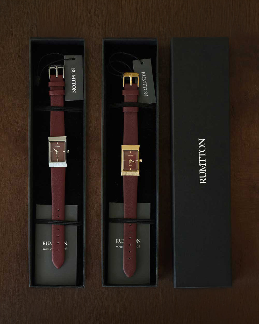 The RUMTTON GRID watch features a captivating interplay between the thick glass and the hairline-finished case. The natural leather band, with its unique softness and rich color, adds a touch of timeless elegance, making this watch a perfect choice for special occasions.