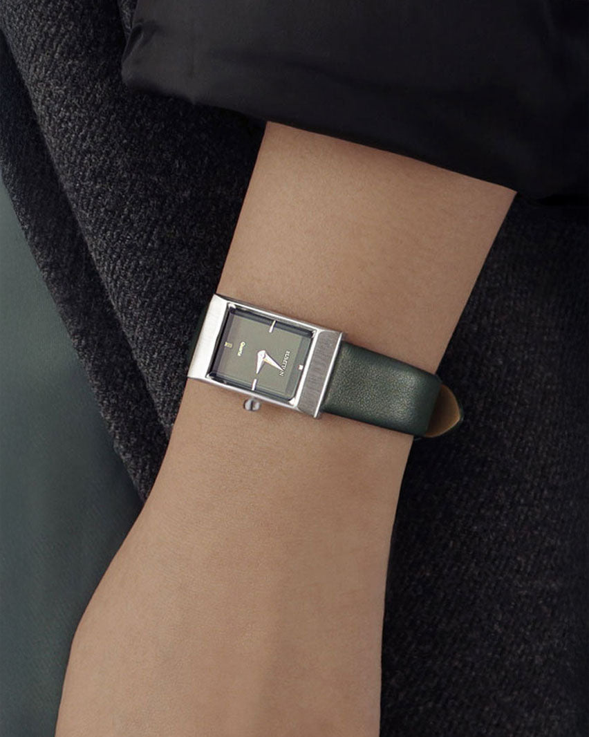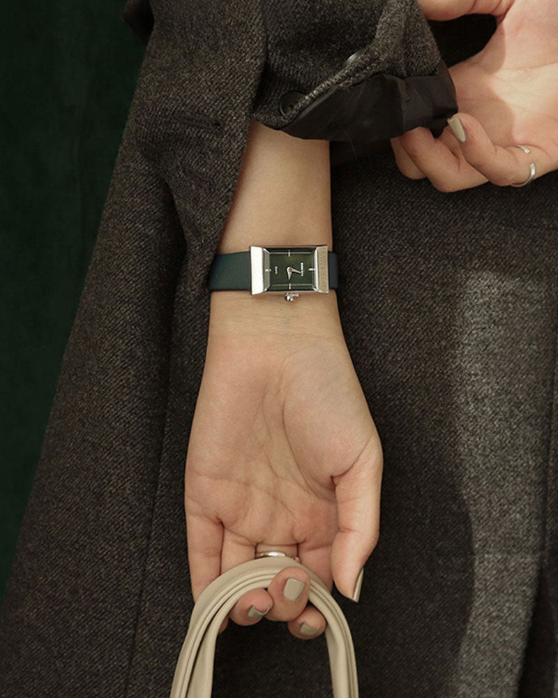 The RUMTTON GRID watch features a captivating interplay between the thick glass and the hairline-finished case. The natural leather band, with its unique softness and rich color, adds a touch of timeless elegance, making this watch a perfect choice for special occasions.