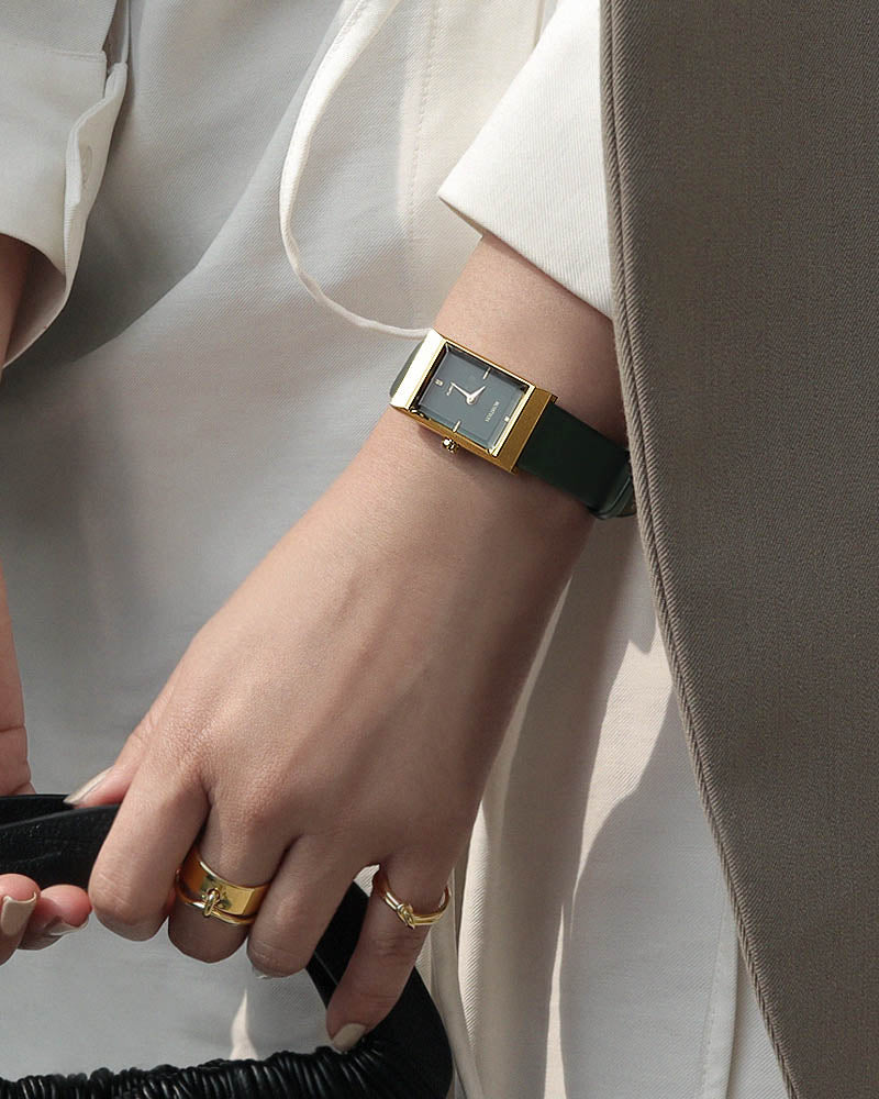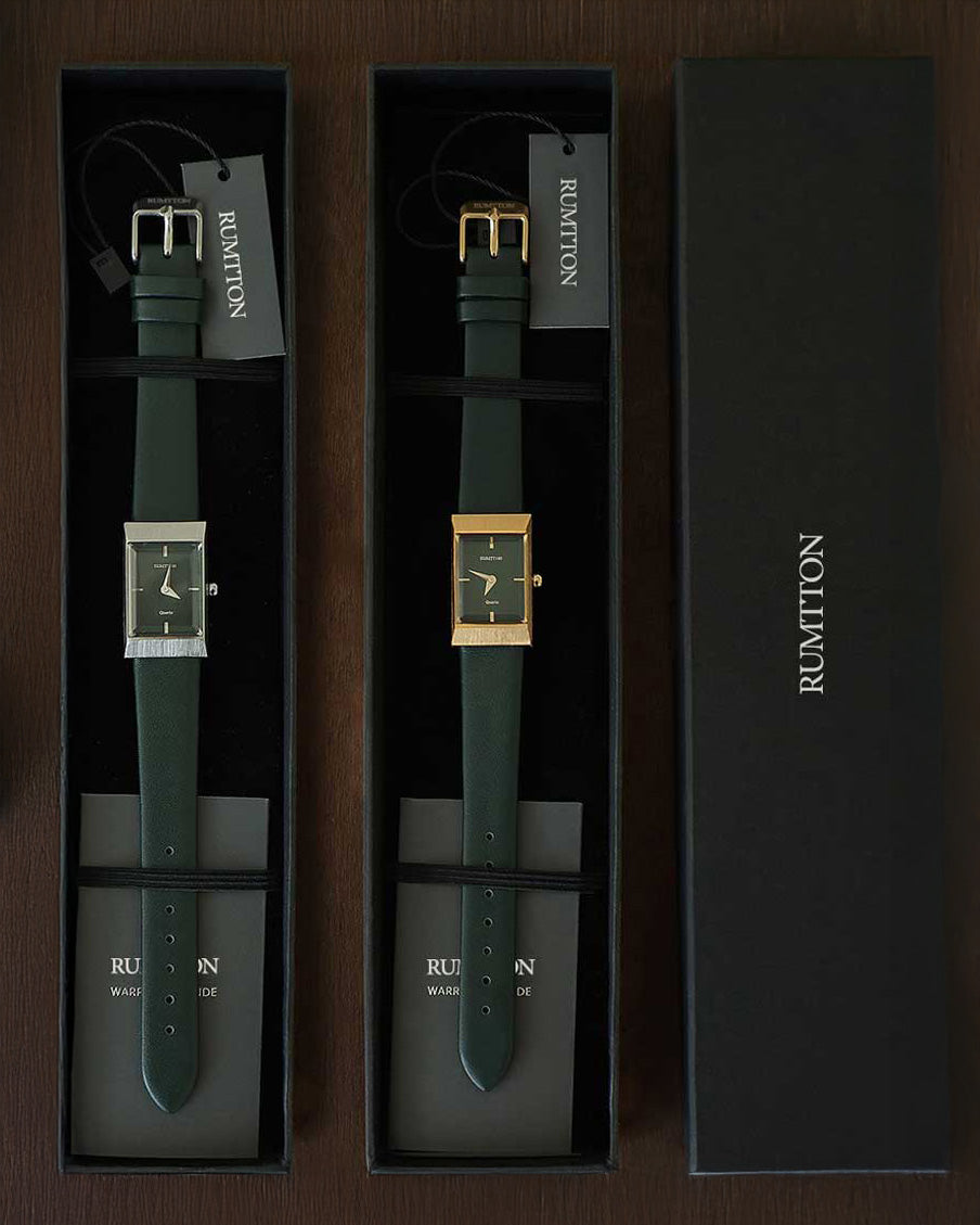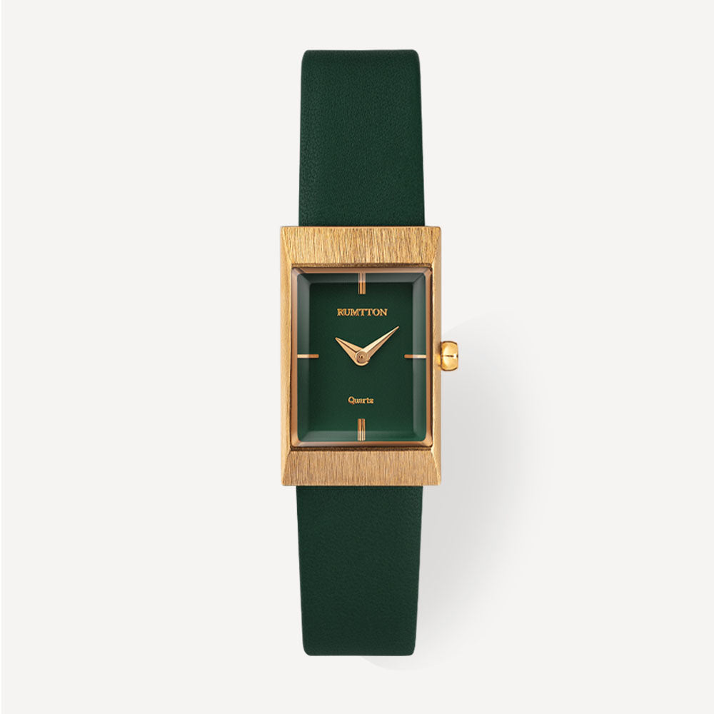 The RUMTTON GRID watch features a captivating interplay between the thick glass and the hairline-finished case. The natural leather band, with its unique softness and rich color, adds a touch of timeless elegance, making this watch a perfect choice for special occasions.