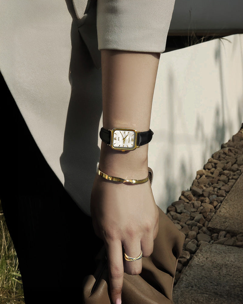 Crafted with a captivating black mother-of-pearl dial, the RUMTTON HARBOR watch adds a touch of sophistication to any ensemble. The genuine leather band ensures a comfortable and luxurious feel for all-day wear. Experience the perfect blend of elegance and comfort with this timeless timepiece.