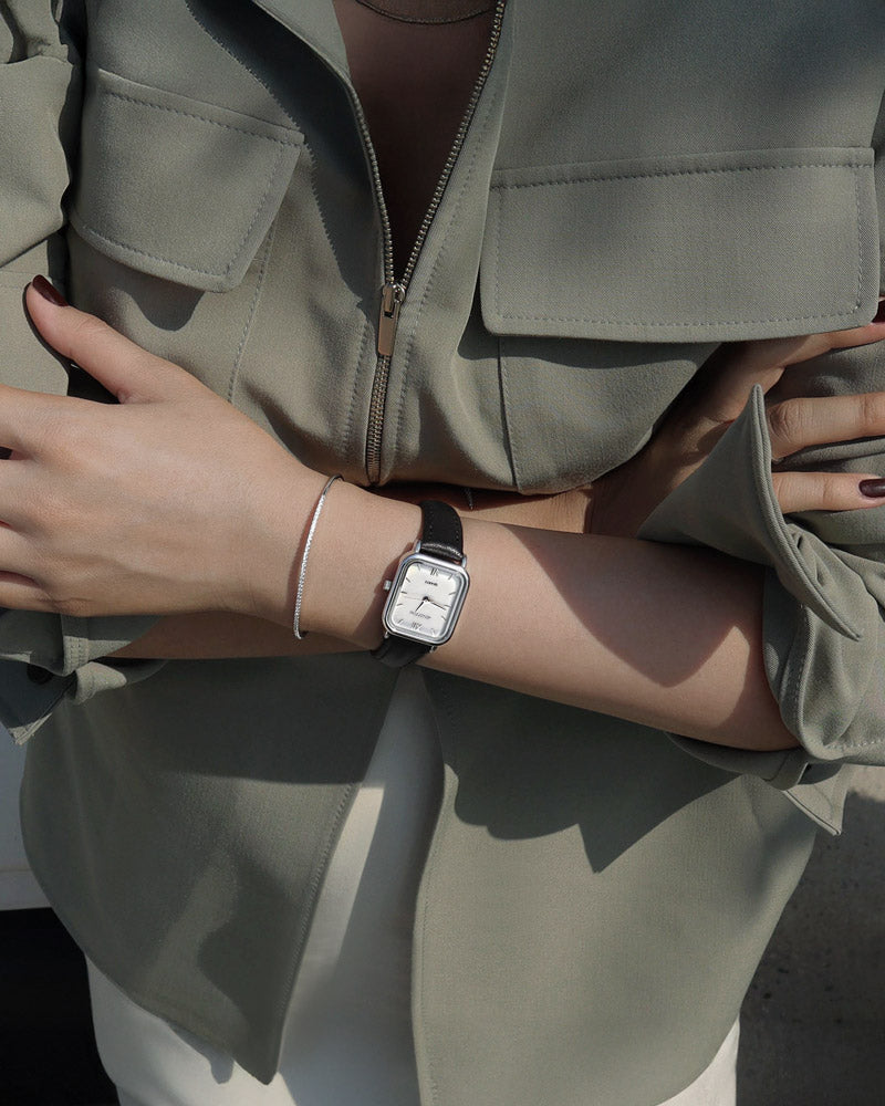Crafted with a captivating black mother-of-pearl dial, the RUMTTON HARBOR watch adds a touch of sophistication to any ensemble. The genuine leather band ensures a comfortable and luxurious feel for all-day wear. Experience the perfect blend of elegance and comfort with this timeless timepiece.