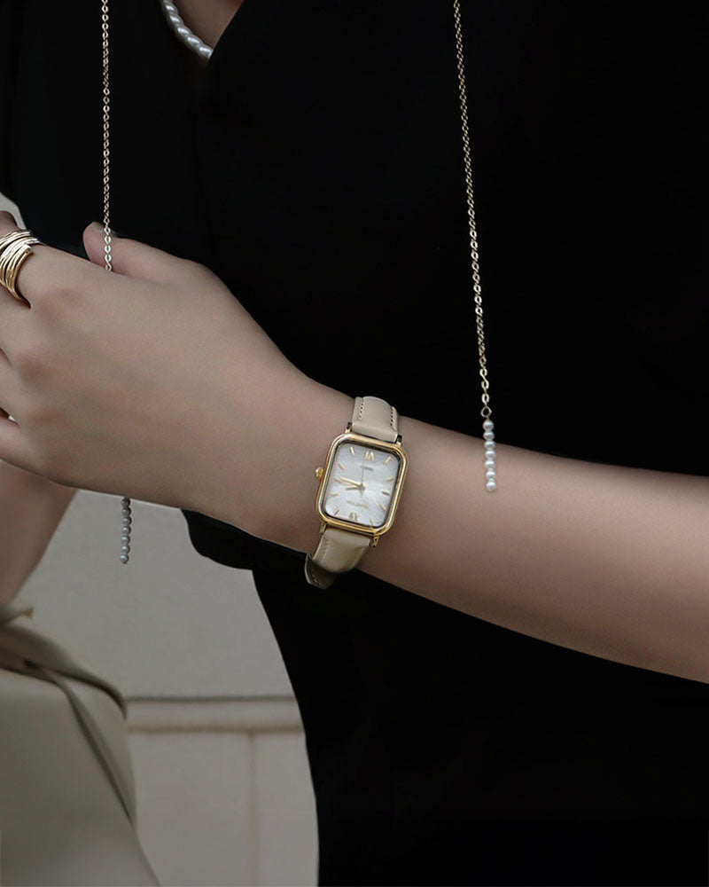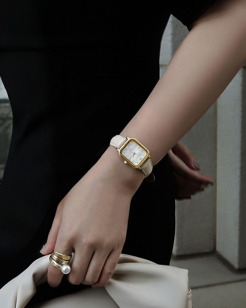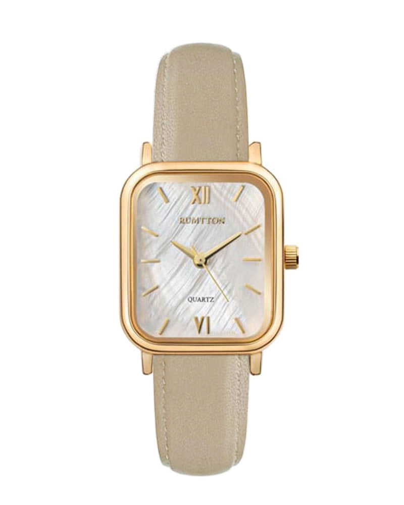 Introducing the RUMTTON HARBOR watch, featuring an alluring natural mother-of-pearl dial. The dial exudes a gentle sparkle, complemented by a stylish leather band that effortlessly pairs with any ensemble. Designed for everyday wear, this timepiece is built to last.