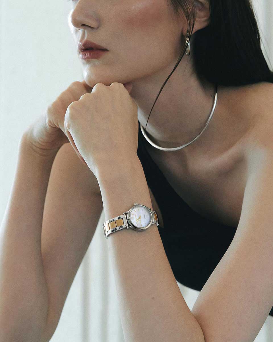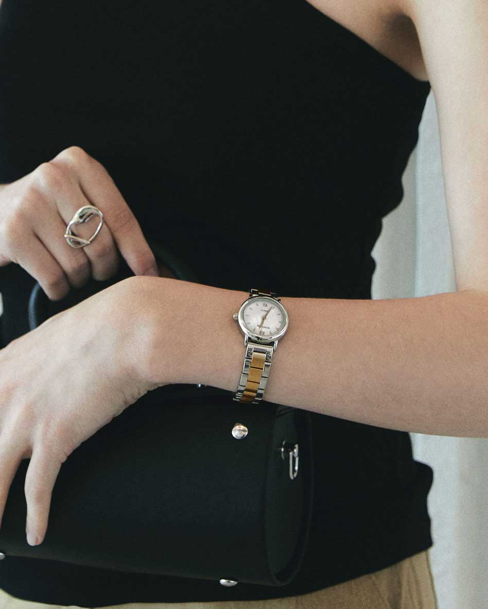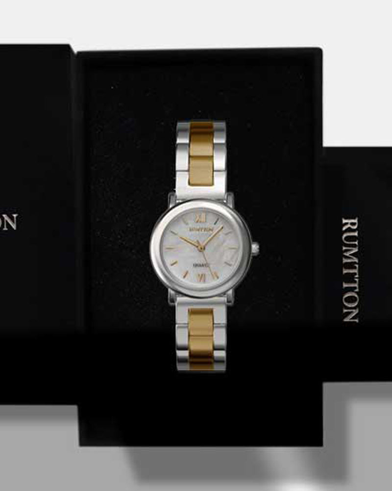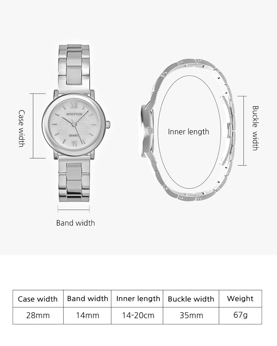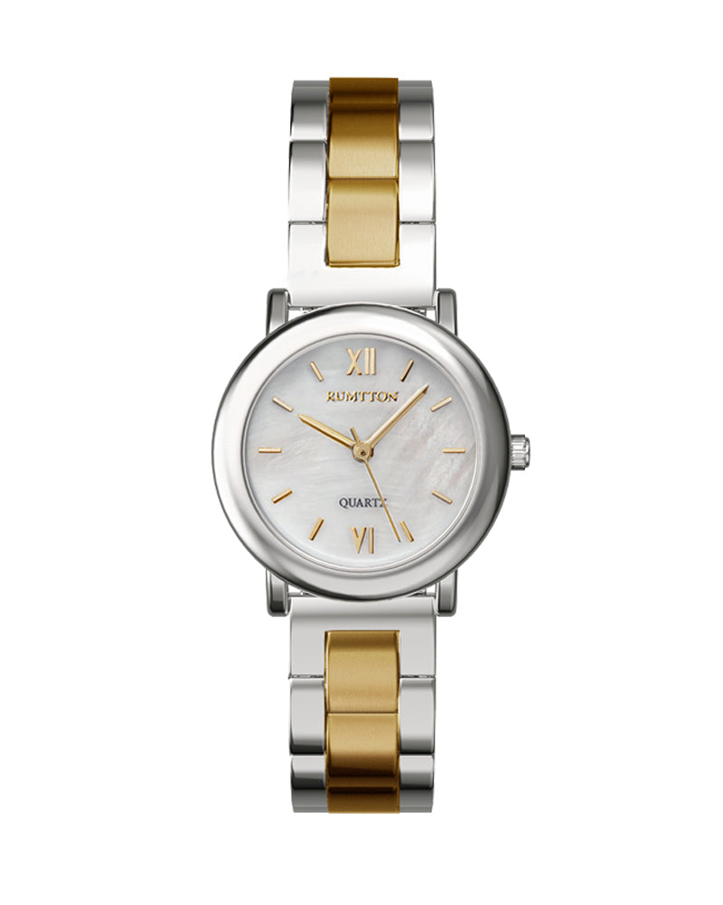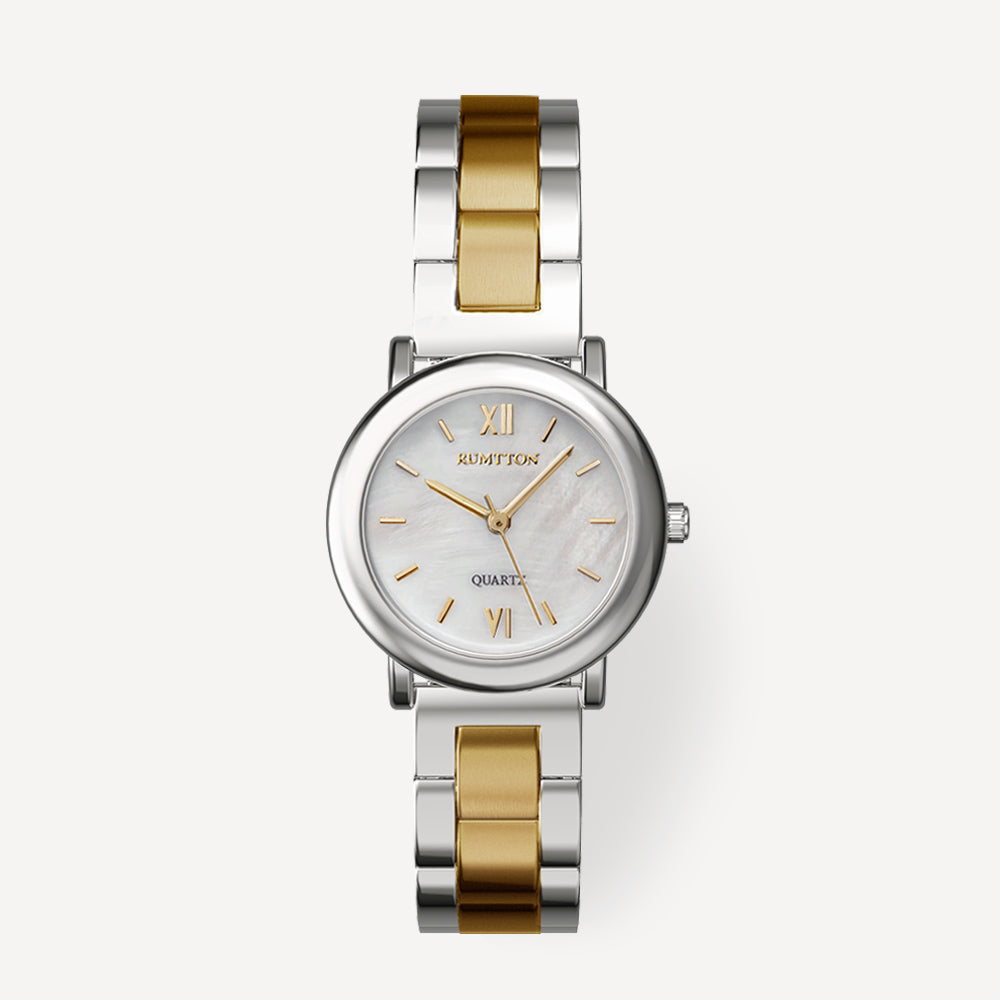 The RUMTTON MARE captures the essence of sophisticated minimalism. The combination of a slim, round case and a matte-finish center link band creates a simple, classic, and timeless design. The natural mother-of-pearl dial features an iridescent shimmer, adding a touch of luxury to your style. Perfectly sized for any occasion, from casual to business, this watch lets you achieve an effortlessly polished look anytime.