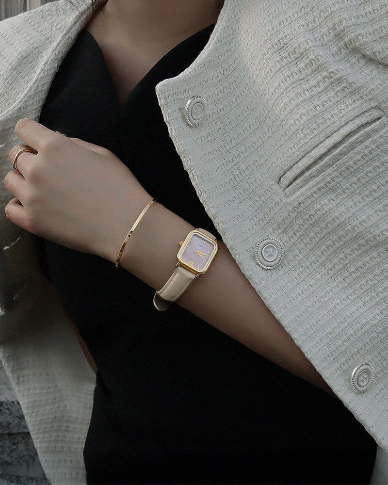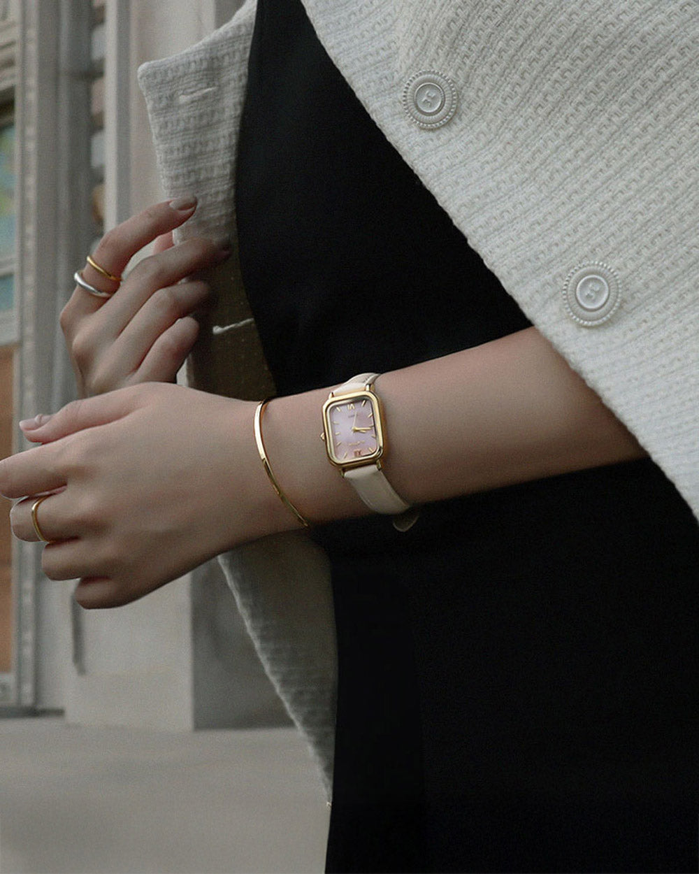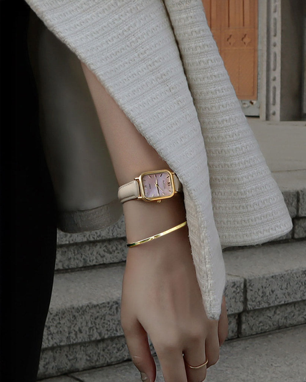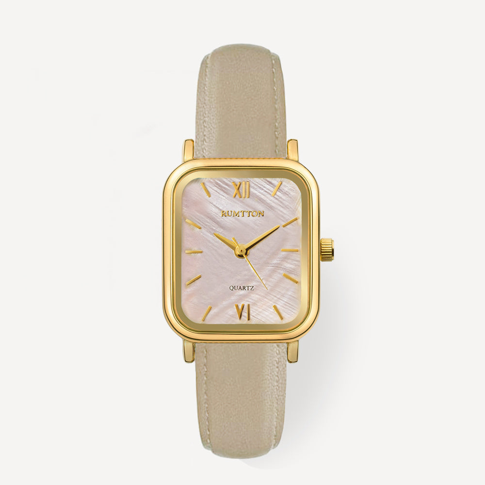 Introducing the RUMTTON HARBOR watch, featuring an alluring natural mother-of-pearl dial. The dial exudes a gentle sparkle, complemented by a stylish leather band that effortlessly pairs with any ensemble. Designed for everyday wear, this timepiece is built to last.